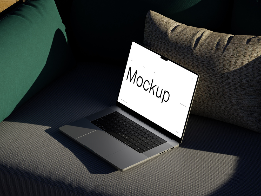 Natural Indoor lighting - Macbook Pro 2022 mockup that is fit for showcasing logo, brand and web design work. It's simple, clean and truly unique.