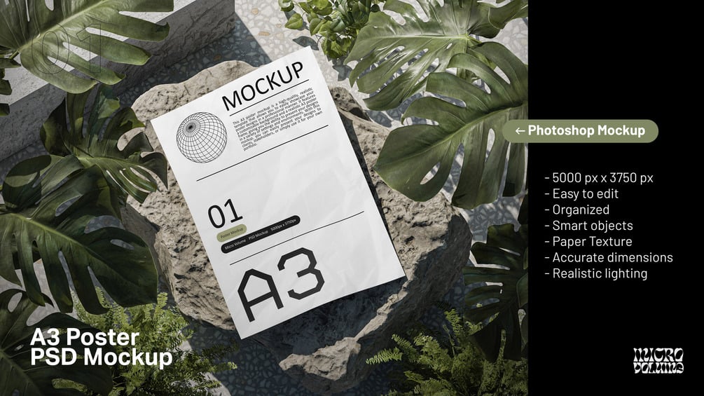 Get the entire bundle of 4 A3 Mockup PSDs here : https://microvolume.gumroad.com/l/a3bundle
