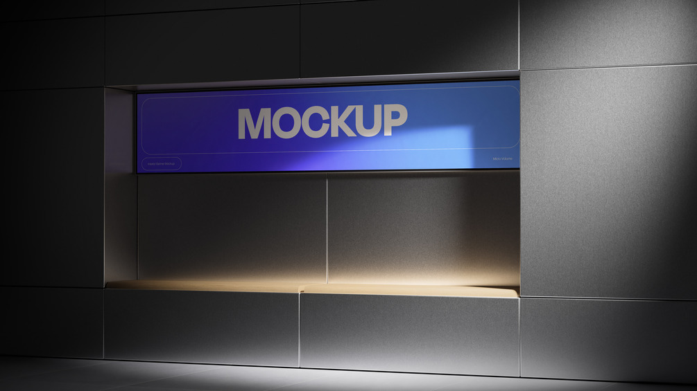 Meticulously crafted cinematic banner mockup that is fit for showcasing logo, branding and advertising work. It's simple, clean and more importantly unique! The setting is lit by a streak of light peaking through the side creating an iconic setting for your artwork.