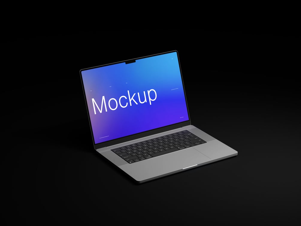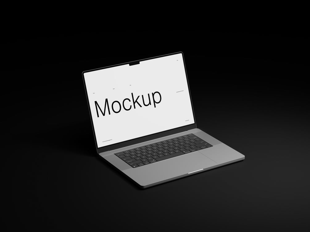 Dark Macbook Pro 2022 mockup that is fit for showcasing logo, brand and web design work. It's simple, clean and truly unique.