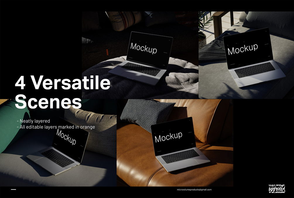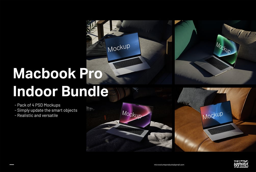 Macbook Pro Indoor Mockup Bundle (4 PSD Scenes)